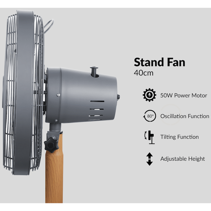 Boden Stark 40cm Stand Fan 40cm Stand Fan Power: 50w Height: 120cm 5 Aluminium Blades
